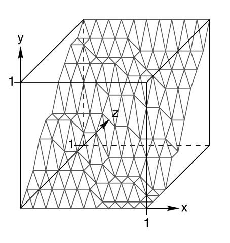 The mesh of triangles corresponds directly to the pixels in the image file. Each square formed by four neighboring pixels is divided into two triangles. An image with a resolution of N*M pixels has (N-1)*(M-1) squares that are divided into 2*(N-1)*(M-1) triangles.