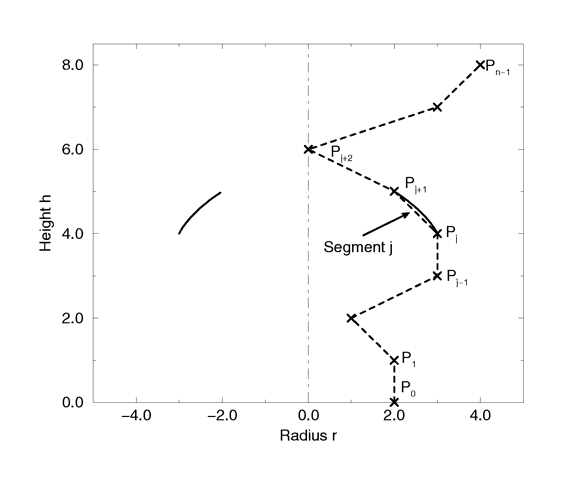 The figure below shows the configuration of the points P(i), the location of segment j, and the curve that is defined by this segment.