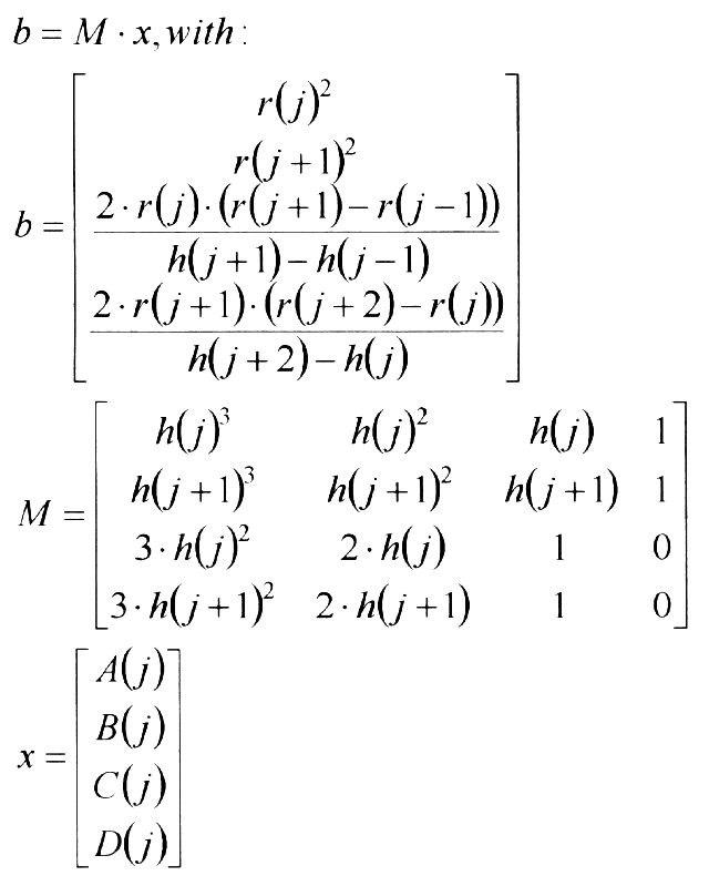 The coefficients A(j), B(j), C(j) and D(j) are calculated for every segment using the equation