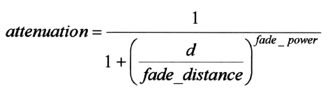 The attenuation is calculated by a formula similar to that used for light source attenuation.