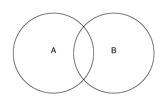 Imagine you have two objects that partially overlap like shown in the figure below. Four different areas of points can be distinguished: points that are neither in object A nor in object B, points that are in object A but not in object B, points that are not in object A but in object B and last not least points that are in object A and object B.