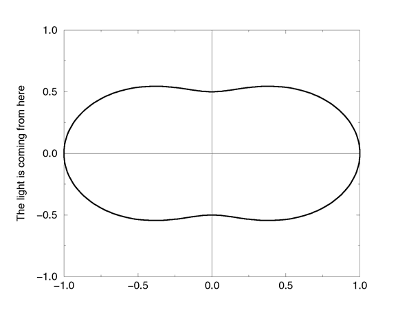 Type 5 is the Henyey-Greenstein scattering model. It is based on an analytical function and can be used to model a large variety of different scattering types. The function models an ellipse with a given eccentricity e. This eccentricity is specified by the optional keyword eccentricity which is only used for scattering type five. The default eccentricity value of zero defines isotropic scattering while positive values lead to scattering in the direction of the light and negative values lead to scattering in the opposite direction of the light. Larger values of e (or smaller values in the negative case) increase the directional property of the scattering.