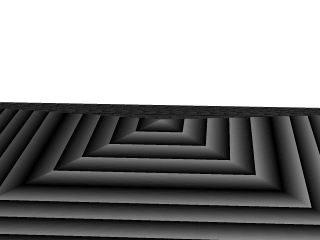 The gradient pigment was selected to give some definition to our object without having to fix the lights and the camera angle right at this moment, but when we render it, we what we've created? A horizontally striped pyramid! By now we can recognize the linear spline connecting the four points of a square, and the familiar final point which is there to close the spline.