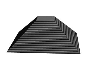 That leads to one more interesting thing about conic sweeps. What if we for some reason don't want them to taper all the way to a point? What if instead of a complete pyramid, we want more of a ziggurat step? Easily done. After putting the second height back to one, and replacing our scale statement, we change the line which reads